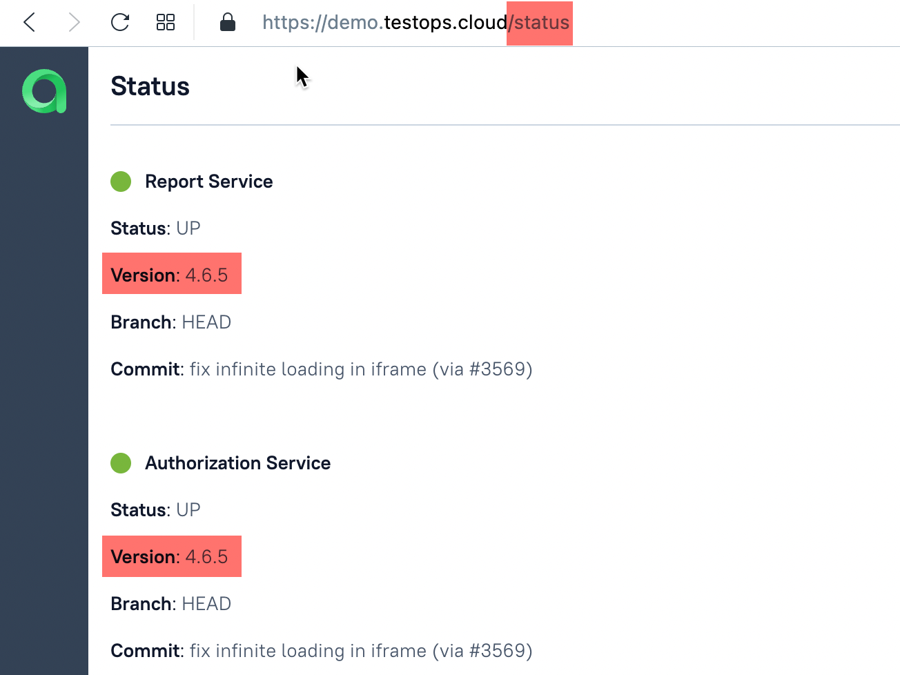 - You can access `{TESTOPS-INSTANCE-URL}/status` page of your Allure TestOps instance.