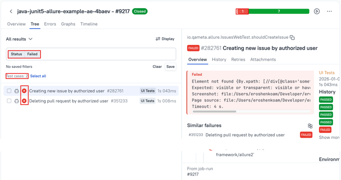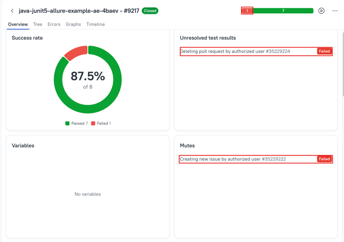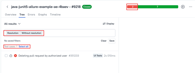 In the image below there are 2 failed tests, but one of these is already resolved.