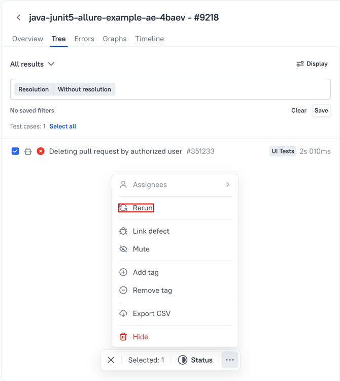 When the triage/analysis is complete, you have the following options to resolve the failed test results- Rerun